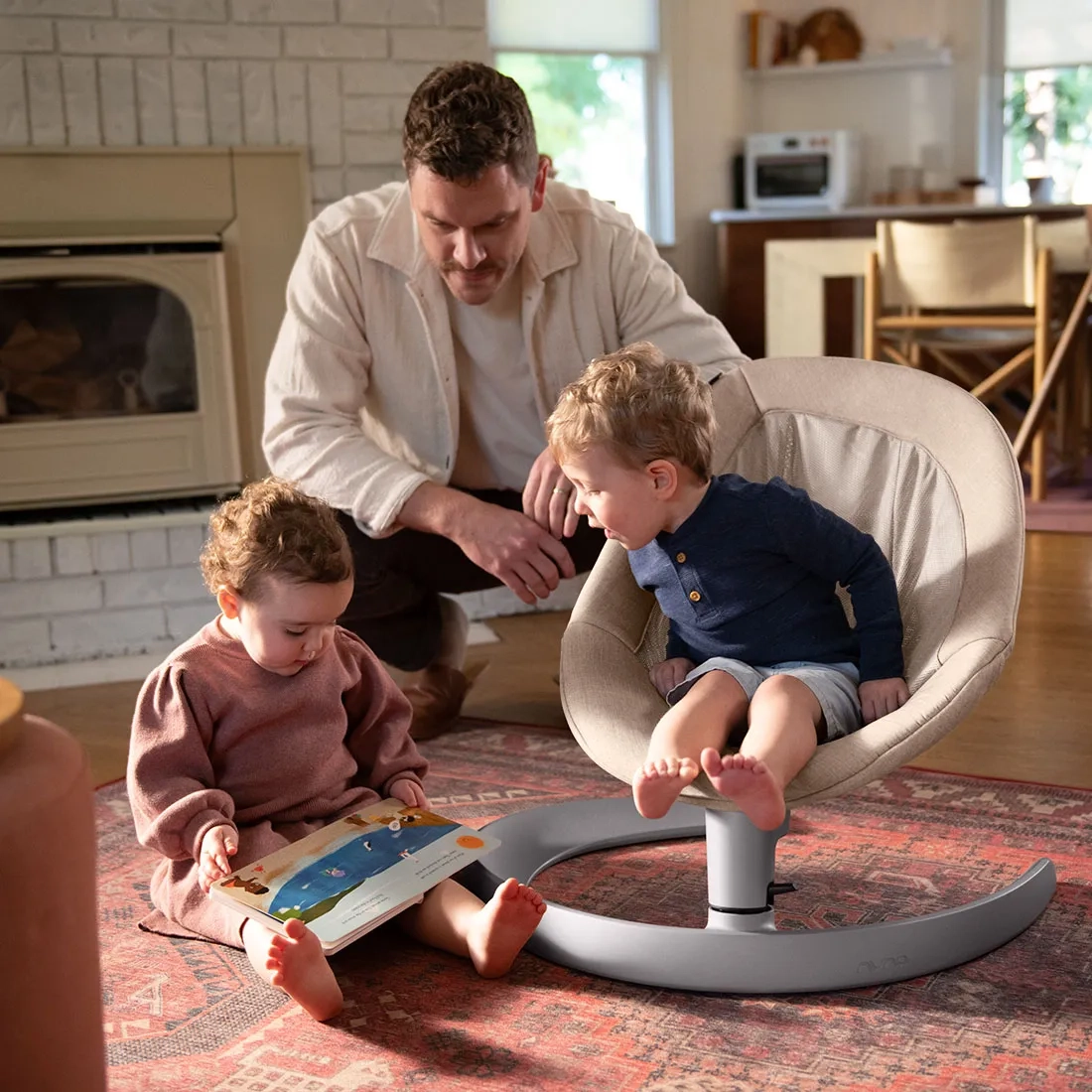 Вдохновлённое беззаботным покачиванием листа на лёгком ветерке, кресло-шезлонг LEAF Grow оснащено уникальным механизмом безмоторного качания. Малыш может расслабиться в естественной успокаивающей атмосфере или понаблюдать за дружелюбными подвесными игрушками, а вы сможете насладиться временем, пока ваш чай ещё тёплый.