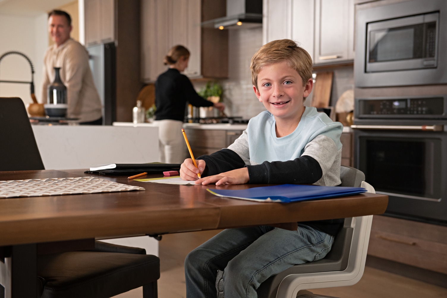 - Скрытый подъемный механизм легко регулирует высоту и позволяет ребенку сидеть за столом