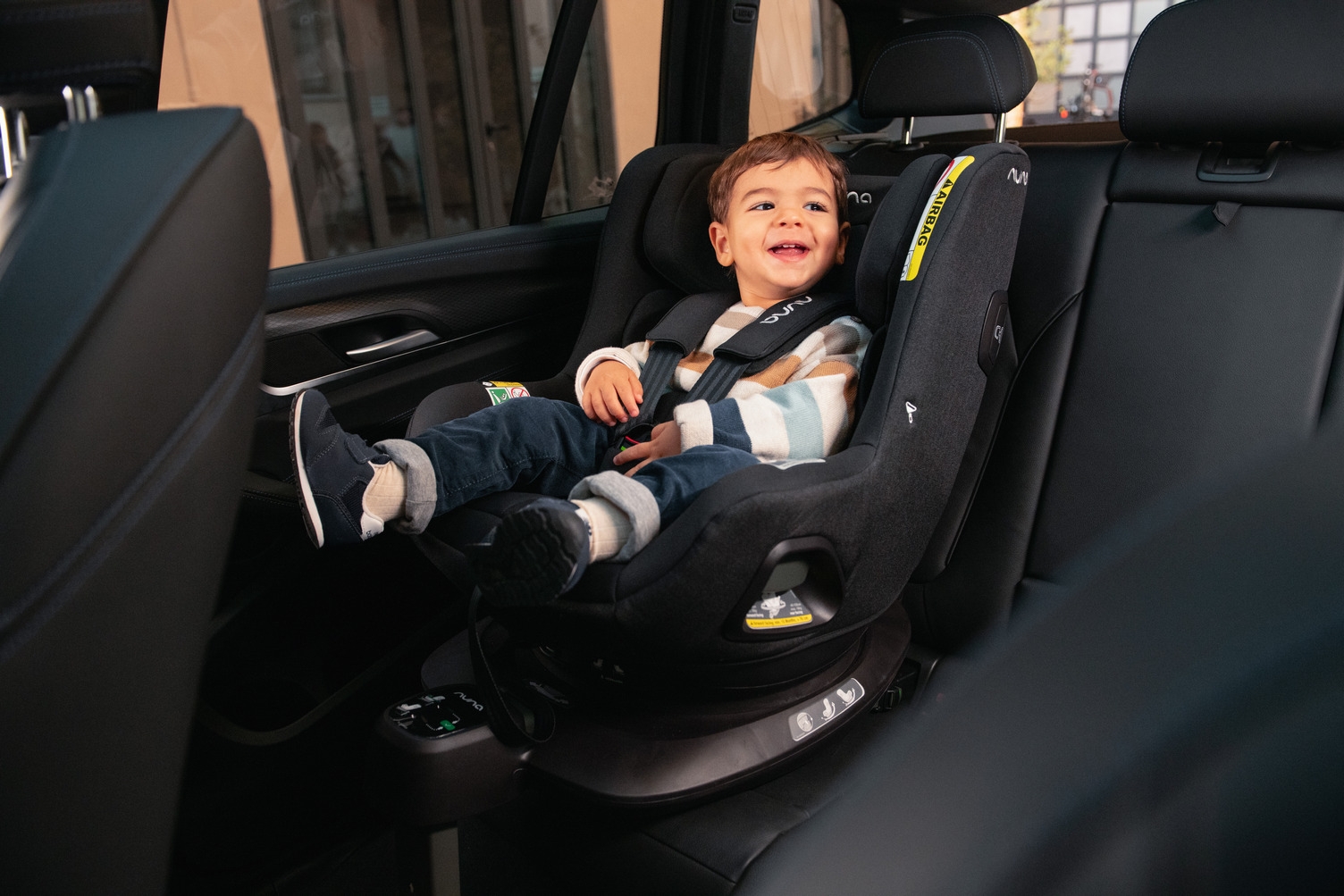 - Умный поворотный замок фиксирует сиденье в положении «лицом назад» до достижения ребенком возраста 15 месяцев