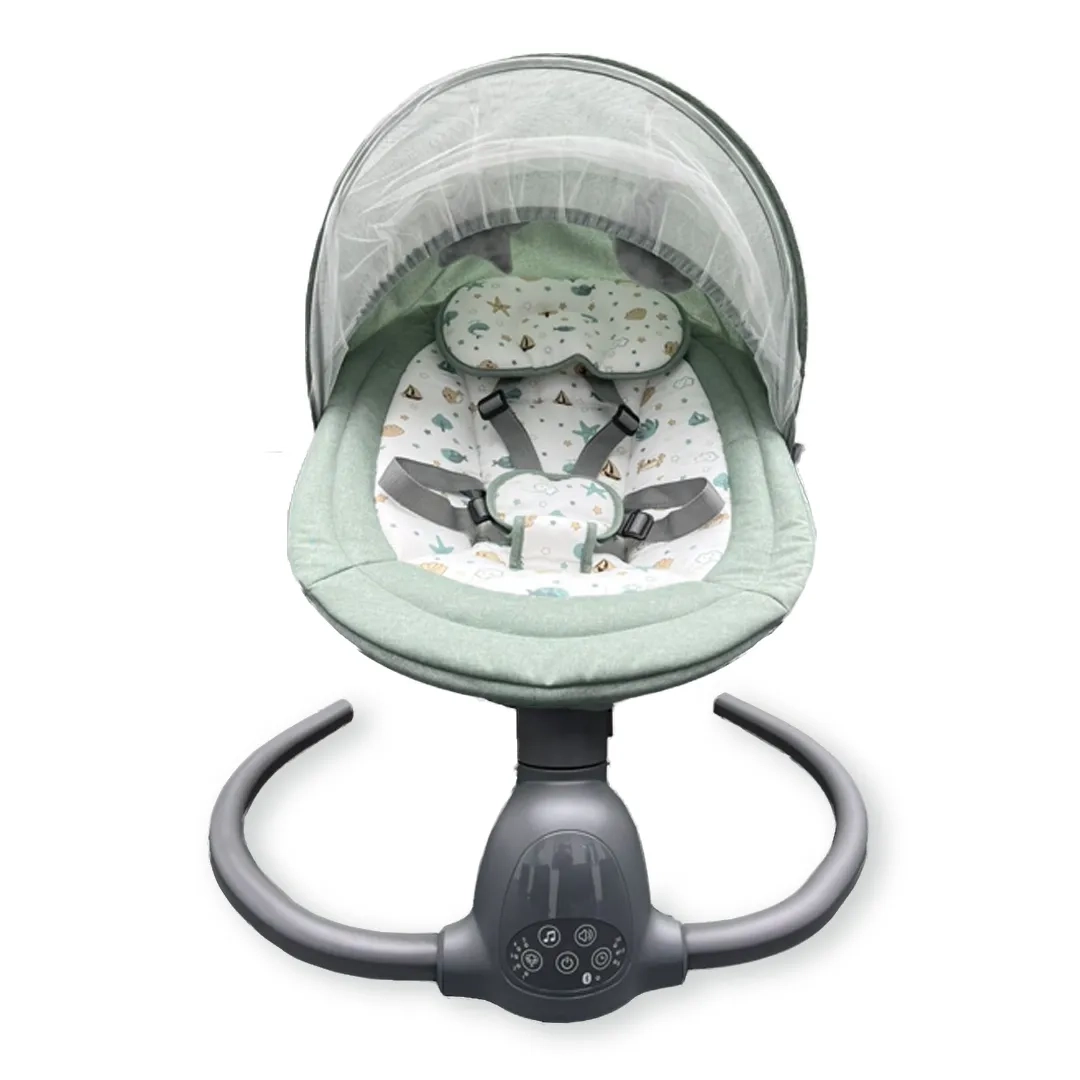 Для комфорта малыша продумана система пятиточечных ремней с накладками и небольшой мягкий подголовник. Обязательно пристегивайте ребенка, когда используете качели и не оставляйте малыша без присмотра