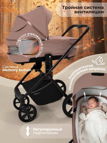 - Уникальное термоактивное дно люльки поддерживает оптимальную температуру, позволяя вашему ребенку наслаждаться свежим воздухом и уютом даже в самые прохладные дни