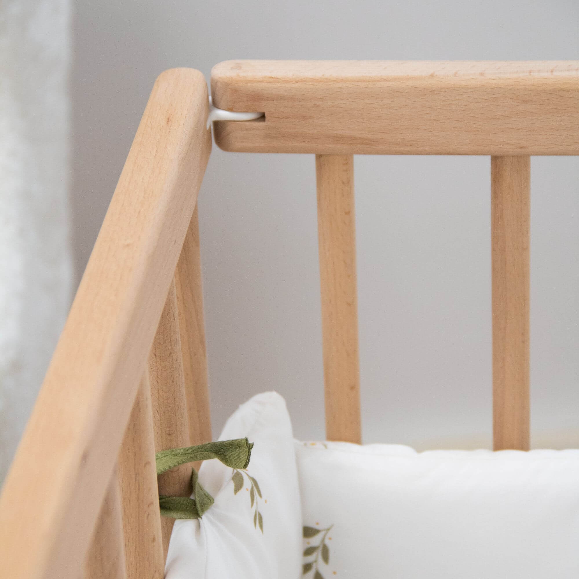 - Сделана из натуральной и экологичной древесины бука, покрыта безопасной эмалью и нетоксичными красками на водной основе, что важно для новорожденных малышей. Бук — это прочный, долговечный материал с красивой текстурой. Кроватка из качественных материалов прослужит не одному поколению детей