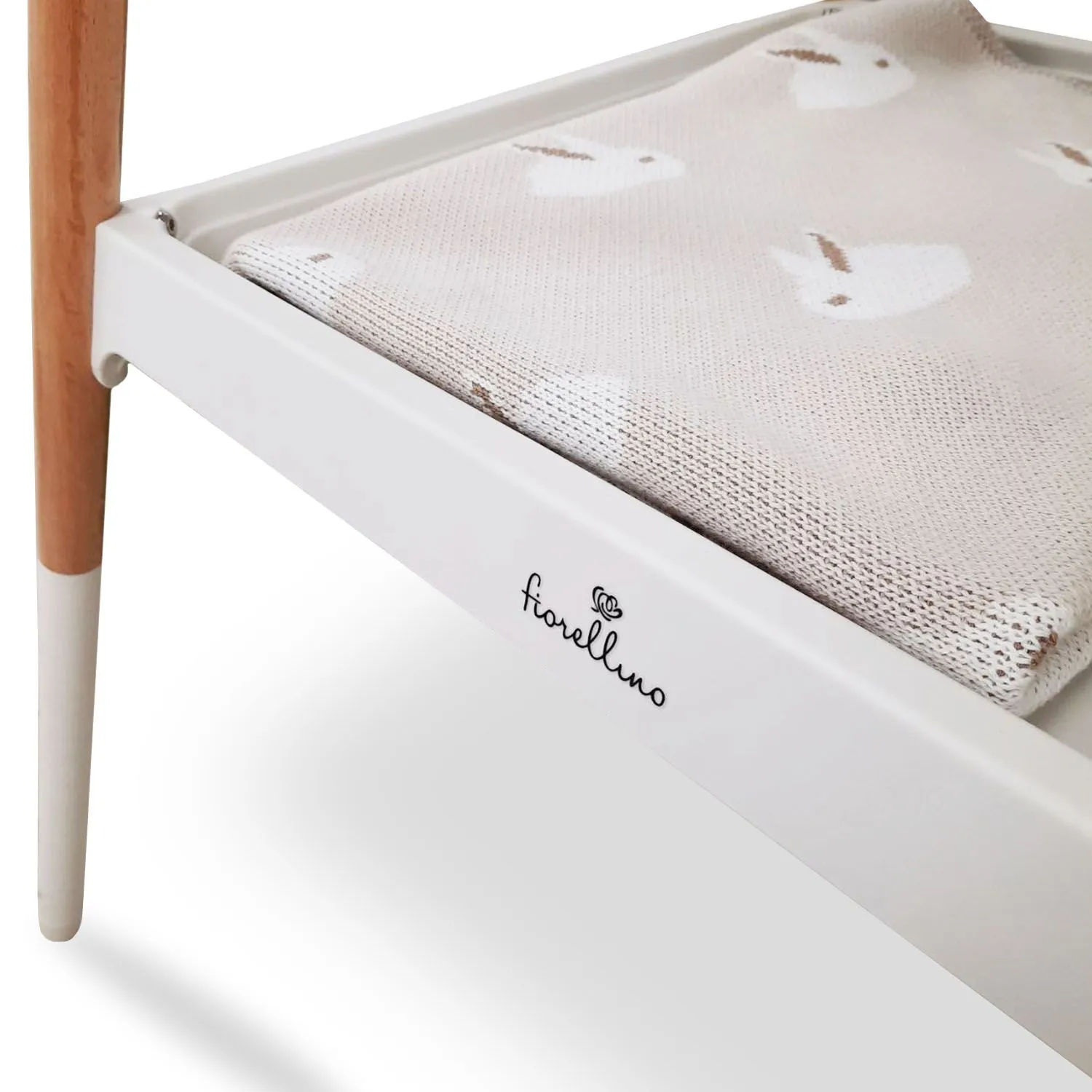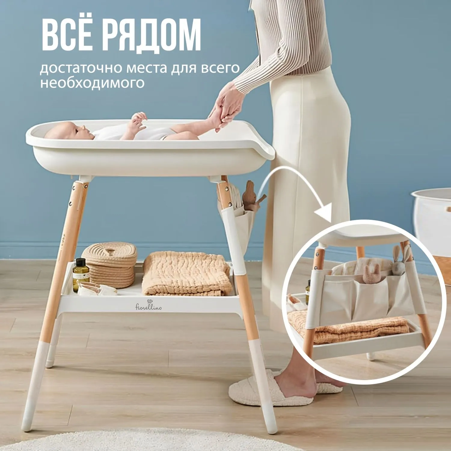 Пеленальный стол Fiorellino с матрасиком продуман до мелочей: оснащен практичной пеленальной поверхностью, которая легко чистится, а также вместительной полочкой и подвесным органайзером, где поместятся кремы, масло для массажа или ватные палочки.