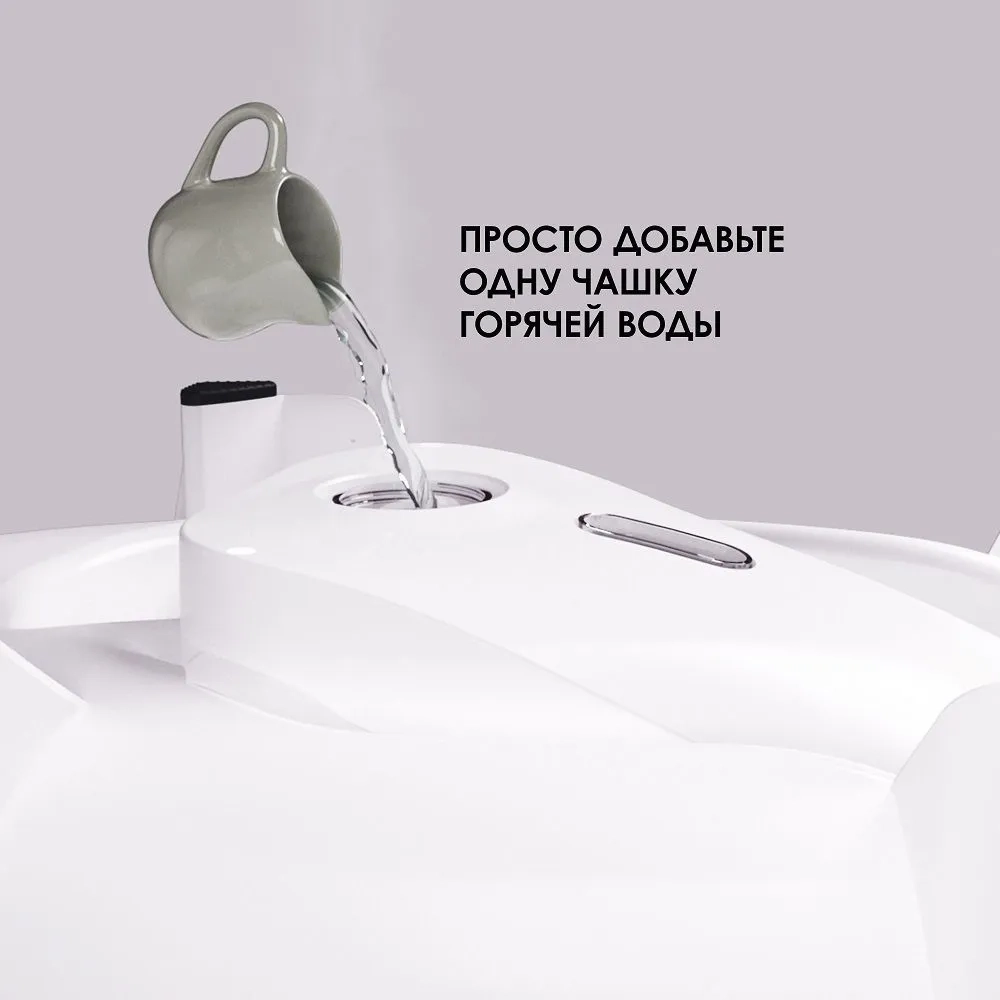 Просто наполните отдельную камеру горячей водой и подождите, пока индикатор на задней панели станет зеленым.